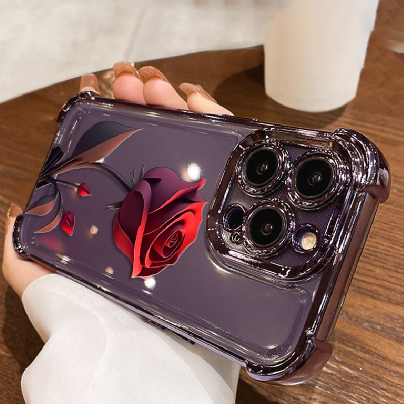 Anti-Drop Red Rose Phone Case for iPhone 13-16 Series